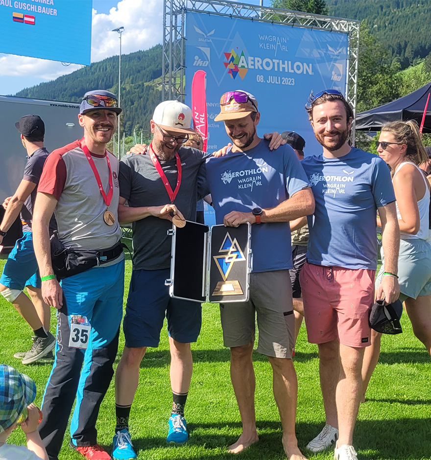 Ein internationaler Wettbewerb, an dem die anderen Teilnehmerinnen und Teilnehmer nicht ausschließlich Profis sind. Ein Traum für viele Hobby-Athleten. Dieser Traum konnte in Wagrain-Kleinarl am 8. Juli 2023 in Erfüllung gehen. Im Gegensatz zu anderen Hike & Fly-Veranstaltungen kämpften beim Aerothlon keine Profi-Athleten gegeneinander.