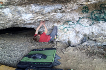 Vor etwa zwei Jahren war es mal wieder so weit. Meine alte Matte war durchgesprungen – und mehr als zum Kaschieren von Wurzeln geeignet als zum Abspringen. Weil mein nächster Boulderurlaub schon gebucht war, stand ich also nicht vor der Entscheidung ob, sondern vielmehr welches neue Crashpad ich mir zulegen sollte. Wie der Titel dieses Berichts vermuten lässt, sollte es das Moonwalk von Ocun sein, das ich in den vergangenen zwei Jahren umfassend getestet habe. Es war unter anderem in Kochel, dem Frankenjura, Tessin, Magic Wood, der Silvretta, in Graz und in den Rocklands im Einsatz. Auf diese Weise hat die Matte nun schon etliche Boulder-Trips hinter sich. Aus meiner Sicht ist es also an der Zeit, ein kleines Fazit zu ziehen.
