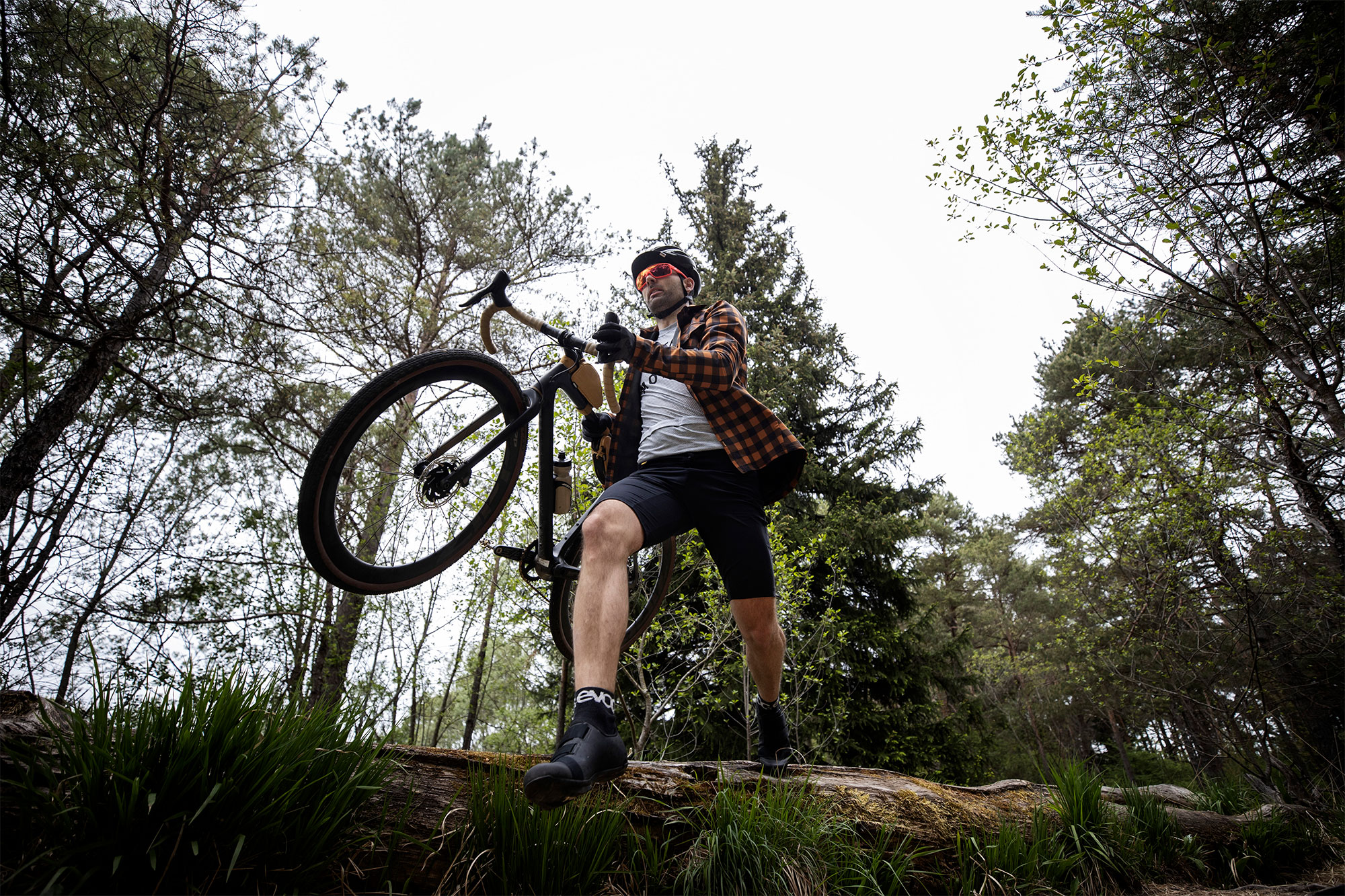 Jan, der Evoc Marketing Manager, bringt eher einen puristischen Rennrad-Ansatz ins Spiel. Für ihn ist beim Graveln besonders reizvoll, dass mit dieser neuen Fahrradspielart große Distanzen mit wechselnden Untergründen möglich geworden sind – und diese auch mit relativ hohen Geschwindigkeiten gefahren werden können. Sein Ziel ist die Langstrecke zum 140 km entfernten Isar Ursprung und entsprechend ist auch sein Setup gewählt: Als einziger fährt er mit 2 Kettenblätter und hat sich auf die kleinsten und kompaktesten Taschen konzentriert, um an diesem langen Tag wirklich nur das Nötigste dabei zu haben.