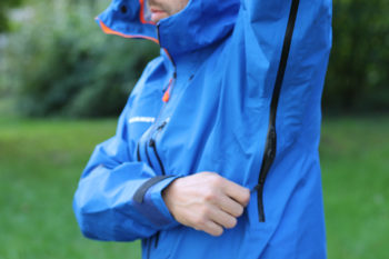 - Für die richtige Durchlüftung unter der Hardshell sorgen die Reißverschlüsse unter den Armen, die in beide Richtungen auf- und zugemacht werden können.