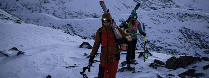 Hier findest Du für Deine Skitour funktionelle Rucksäcke, atmungsaktive Hardshell- und Softshelljacken, warme Isolationsjacken, robuste Skihosen und vieles mehr. Fair hergestellt und aus umweltfreundlichen Materialien. Wir zeigen Dir die Ausrüstung!